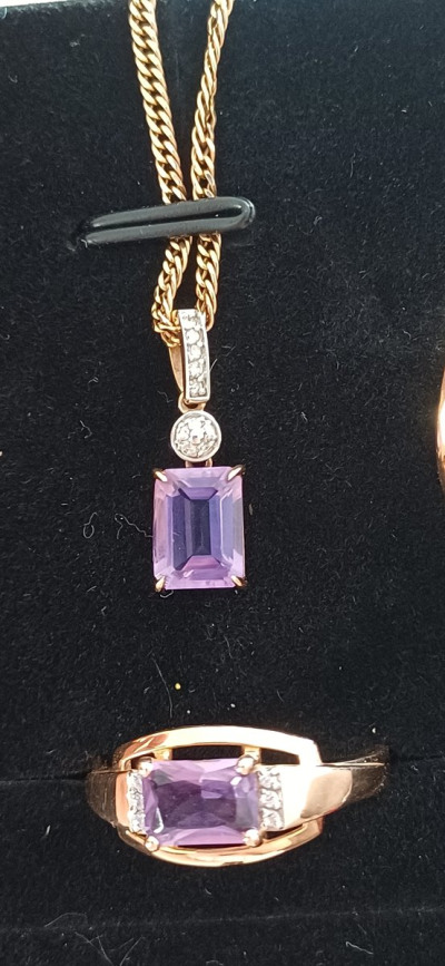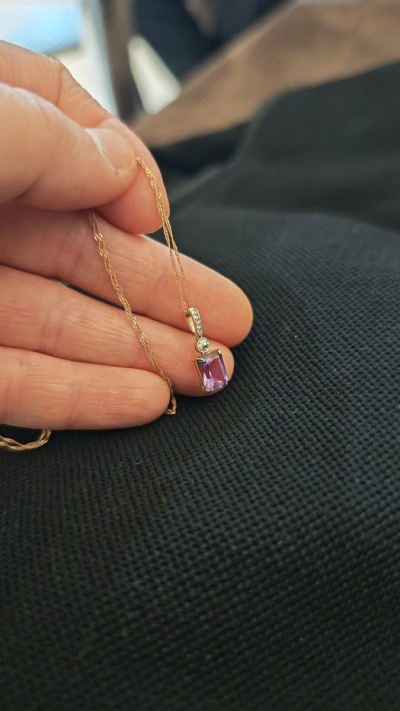 Золотая подвеска с бриллиантами природными и аметистами природными