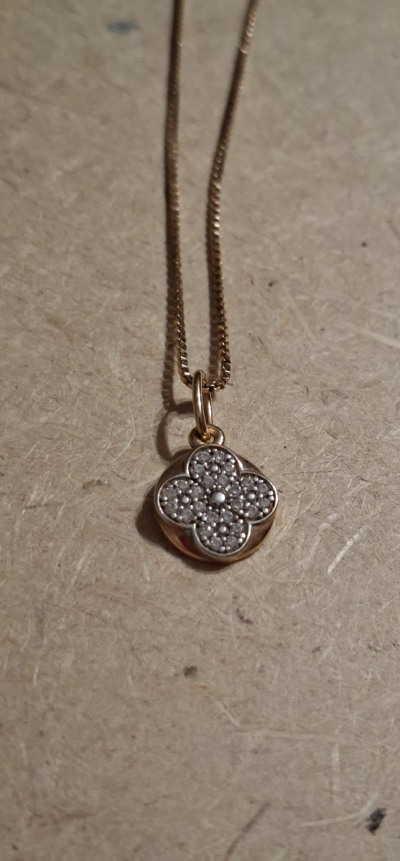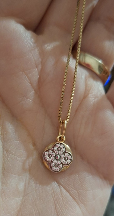 Искала себе подвеску под золото для многослойности. Эта подошла идеально: не большая и не маленькая, камешки закреплены хорошо, выглядит аккуратно. На фото на золотой цепочке, смотрится как единый комплект.