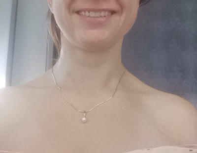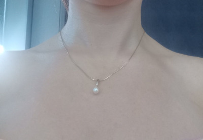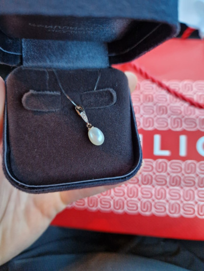 Очень красивая элегантная подвеска. Жемчуг овальной формы и небольшого размера придает женственности, смотрится очень нежно, аккуратно. Покупкой довольна