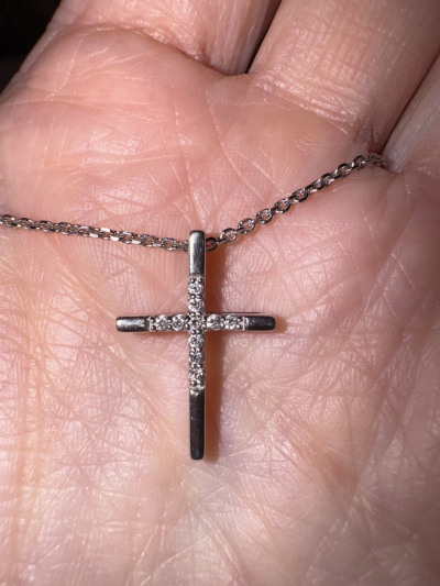 Крестик из белого золота. Выбрала этот, больше всех понравился.