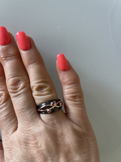 Как я рада этому колечку. Влюбилась в черный цвет и дизайн, кольцо смотрится дорого. Очень жалею, что не заинтересовалась этой коллекцией, когда она была вся в наличии и, тем более, в серебре.