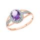 Кольцо с 1 аметистом; фианит;