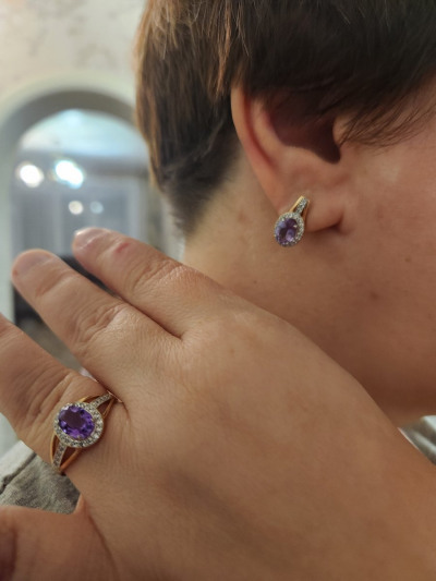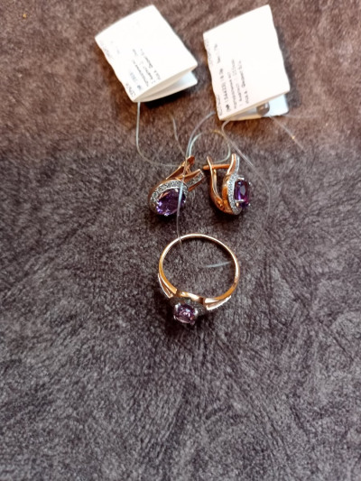 Всера пришло кольцо, очень ждала, теперь у меня комплект, нежный камень аметист, сверкающие фианиты, смотрится шикарно.