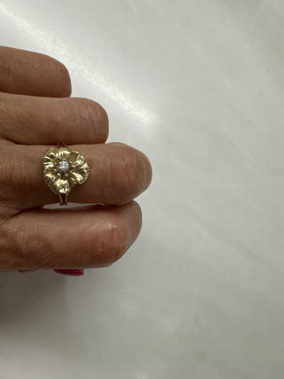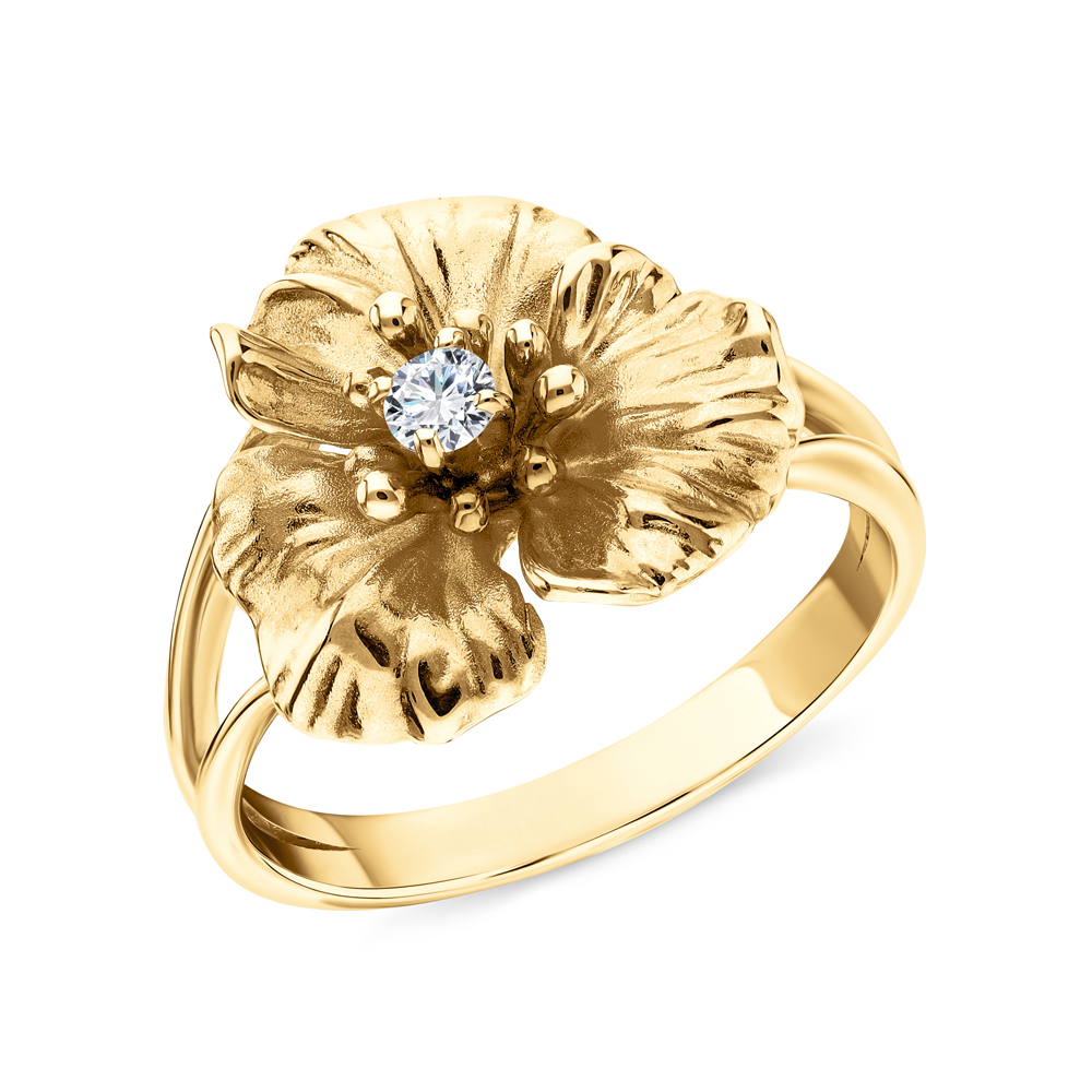 Кольцо с 1 бриллиантом природным, 0.06 карат, огранка круг 57 граней, цвет 3, чистота 5, тип огранки А;