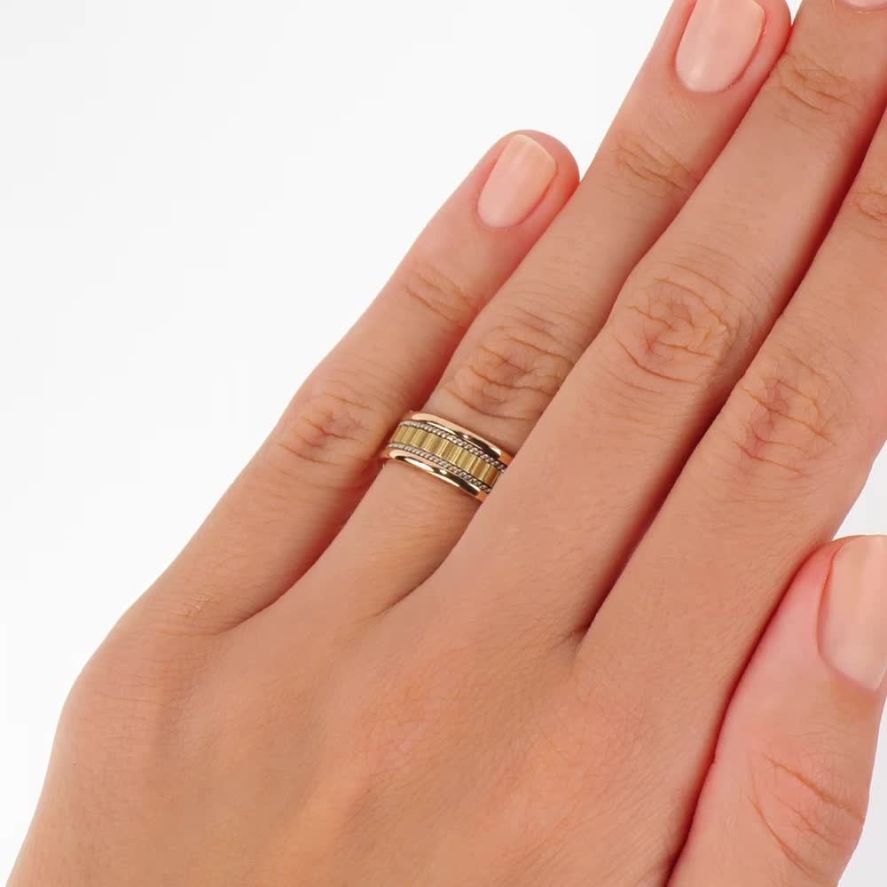 Розовое, белое и желтое золото 585 пробы.