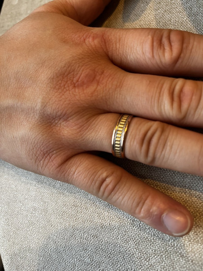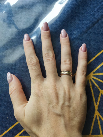 Пишу отзыв спустя полтора года покупки! Кольцо необычно красивое, увесистое, золото не тонкое! Не цепляется, царапин на ней не видно, особого ухода не требует. Лимонный цвет золота очень красиво переливается, не потускнел☝️ я планировала взять кольцо дорожку с бриллиантом, но так как у мужа выбор пал на это кольцо, консультант магазина тоже рассказала плюсы и минусы, решили взять все же эти и нисколько не пожалели! Советую, не пожалеете!