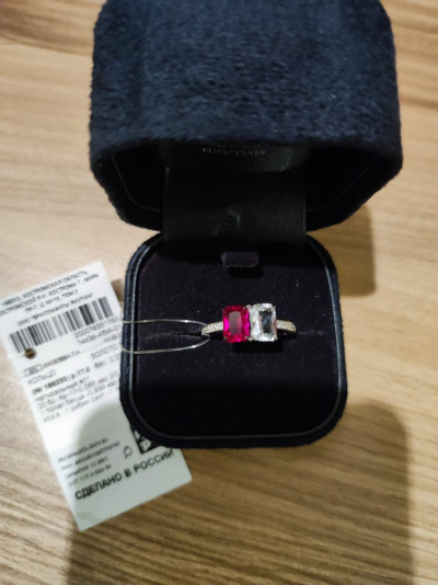 Кольцо очень красивое. Камни просто сверкают. Когда заказала, были сомнения, так как оно немного необычное. Но когда увидела в магазине, уже не могла устоять. У меня 17 размер, подходит для среднего пальца. Вес кольца хороший,не тонкое,и камни заметные. К покупке рекомендую.