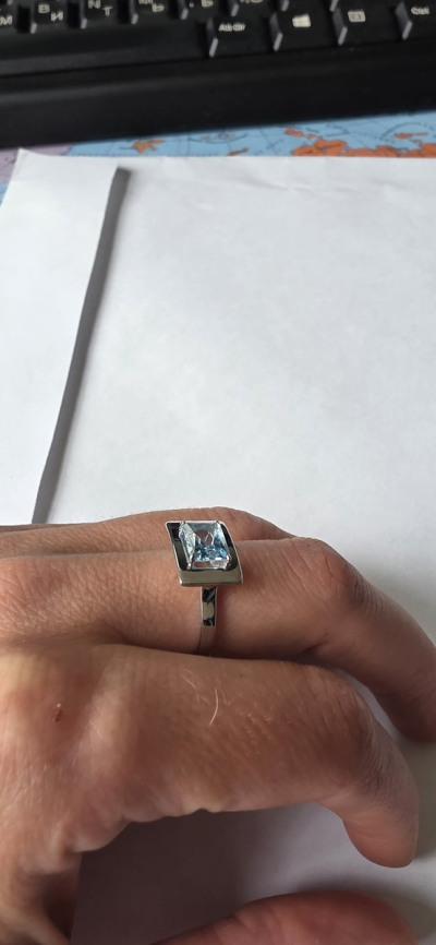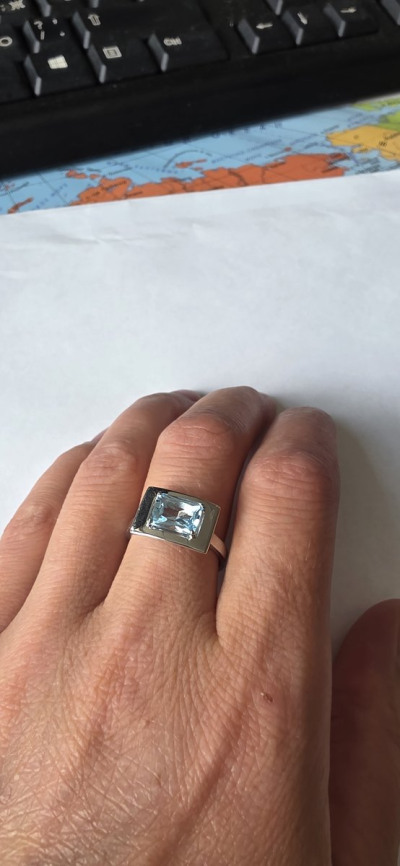 Классное кольцо с природным и нежным топазом,цвет обалденный-нежно голубой