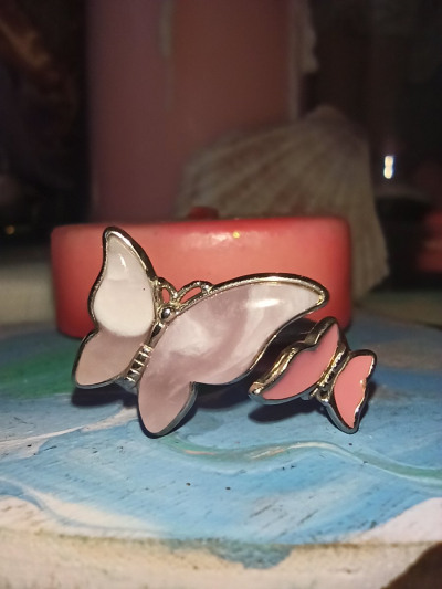 Хороший дизайн колечка, красивые бабочки, красивый розовый кварц