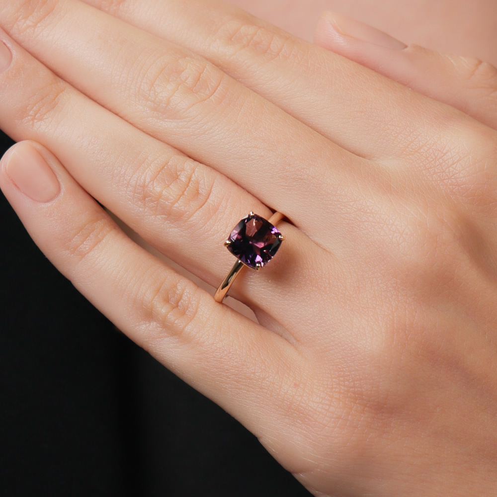 Кольцо из розового золота 585 пробы с 1 аметистом весом 2.045 карат и Б-огранкой — это изысканное украшение, которое подчеркнет вашу индивидуальность. Аметист, благородный камень с ярким фиолетовым оттенком, придает этому кольцу неповторимый шарм.