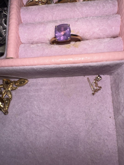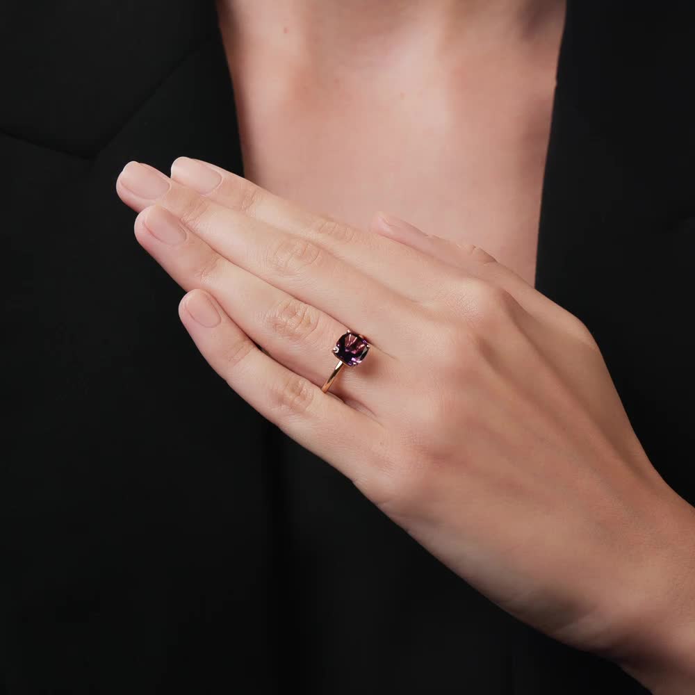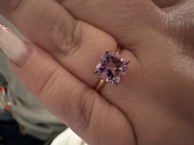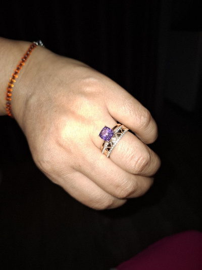 В редких случаях характеристики украшения или упаковка могут иметь отличия от представленных на фото или в описании.Кольцо с 1 аметистом природным, тип огранки Б;