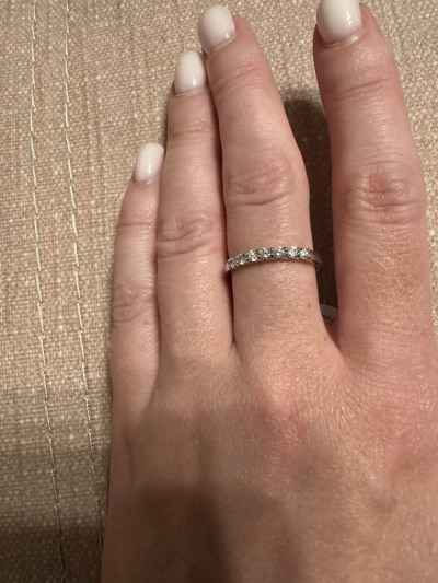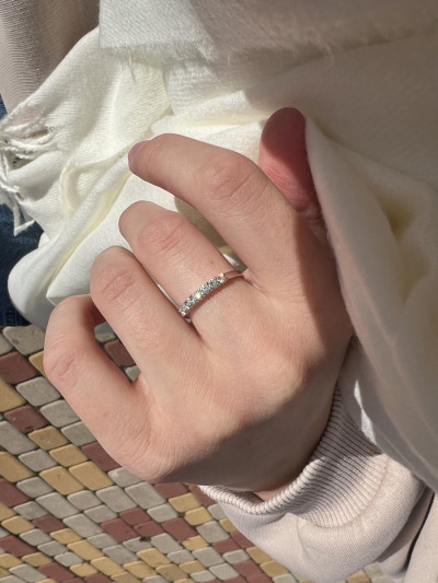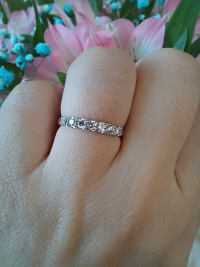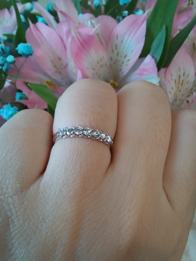 Пришлось перезаказывать, в первом изделии были неровно вставлены камни и почему-то проба проставлена снаружи, но второе кольцо пришло в идеальном состоянии: камни заметные, колечко легкое, ярко блестит и переливается, выглядит дорого, я очень довольна подарком мужа!