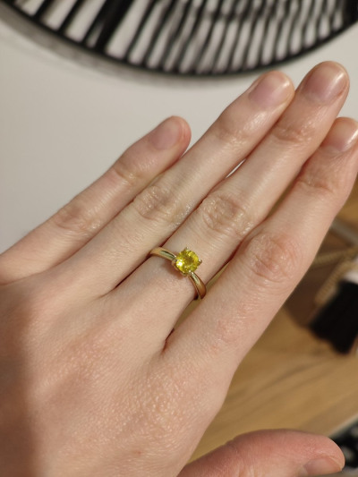 Идеальное сочетание - жёлтый сапфир 1, 022 карата в жёлтом золоте. Жена в восторге.