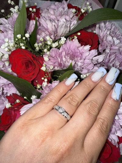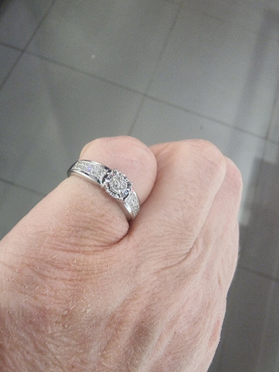 Кольцо замечательное. Красиво блестит, теперь у меня полный комплект вместе серьгами. Покупали с мужем в ТЦ торговые ряды, девочки продавцы профессионалы.