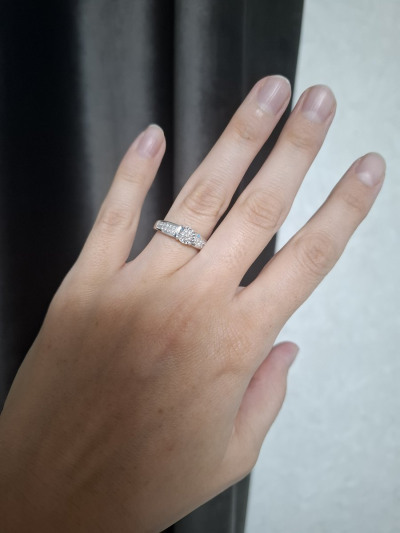 Шикарное кольцо. Очень изящное. Хороший вес самого изделия. Пожизненная гарантия как дополнительный плюс.