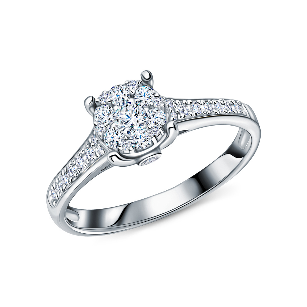 Кольцо с 1 бриллиантом природным, 0.08 карат, огранка круг 57 граней, цвет 3, чистота 6, тип огранки А;