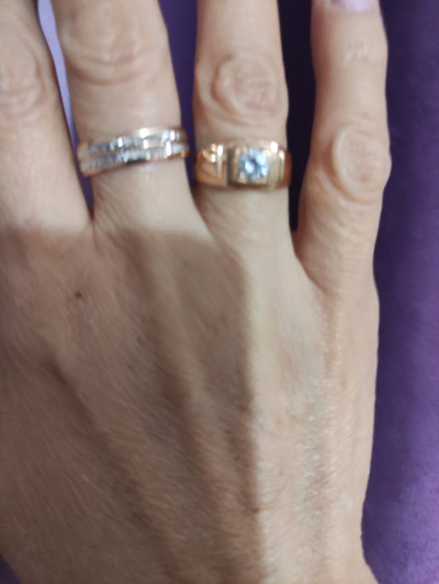 Долго искала кольцо под конкретные серьги. Это подошло. Смотрится солидно, вставка из белого золота переливается, как дорожка камней. Очень красиво.