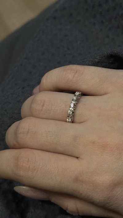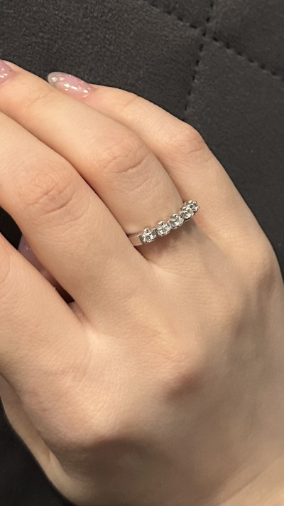 Отличное колечко из белого золота с бриллиантами. Его можно на пальце носить как самостоятельное украшение, а можно добавить одно-два кольца, которые с ним гармонируют. Камни красиво играют в лучах света. Покупкой довольна.