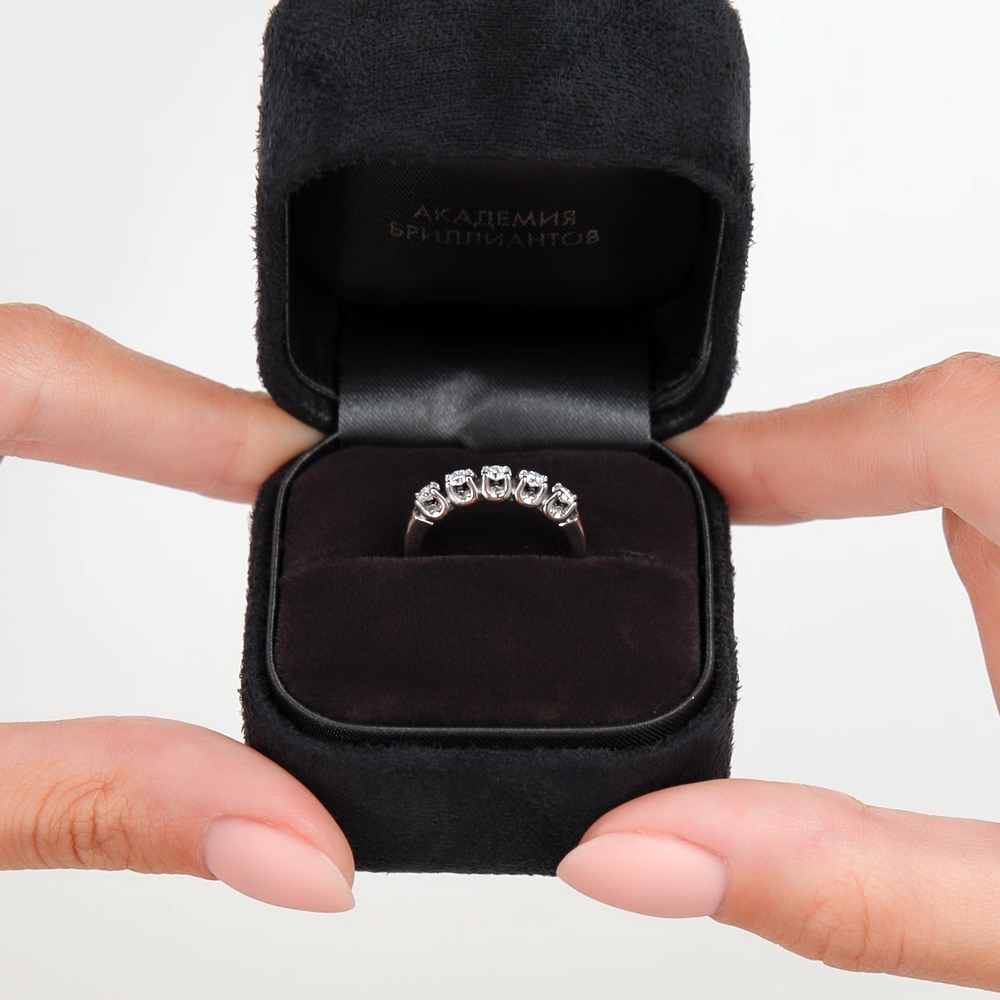 Кольцо с 5 бриллиантами природными, 0.18 карат, огранка круг 57 граней, цвет 3, чистота 6, тип огранки А;