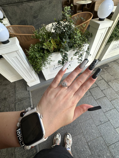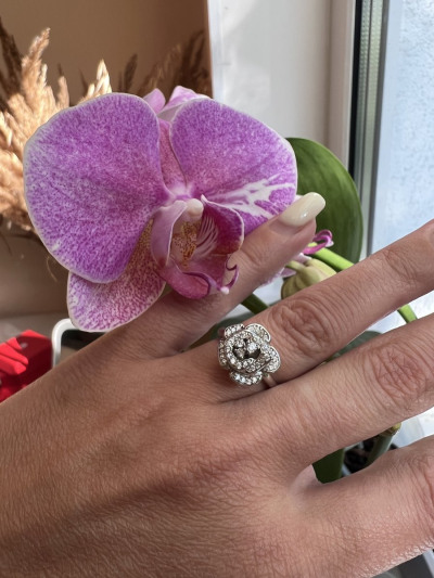 Красивое и нежное кольцо. Прекрасно смотрится на тонком пальчике. Переливается на свету. Очень довольна покупкой.