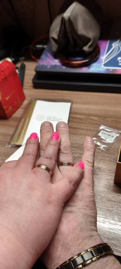 Очень долго выбирали, тк было много важных критериев. в этих кольцах мы нашли : лимонное золото, удобную посадку и ширину изделия, при этом оно осталось простым, но все еще собирает много внимания. очень интересно играет в зависимости от цвета метала, которое вы предпочитаете. я люблю лимонное золото и кольцо прекрасно сочетается с ним