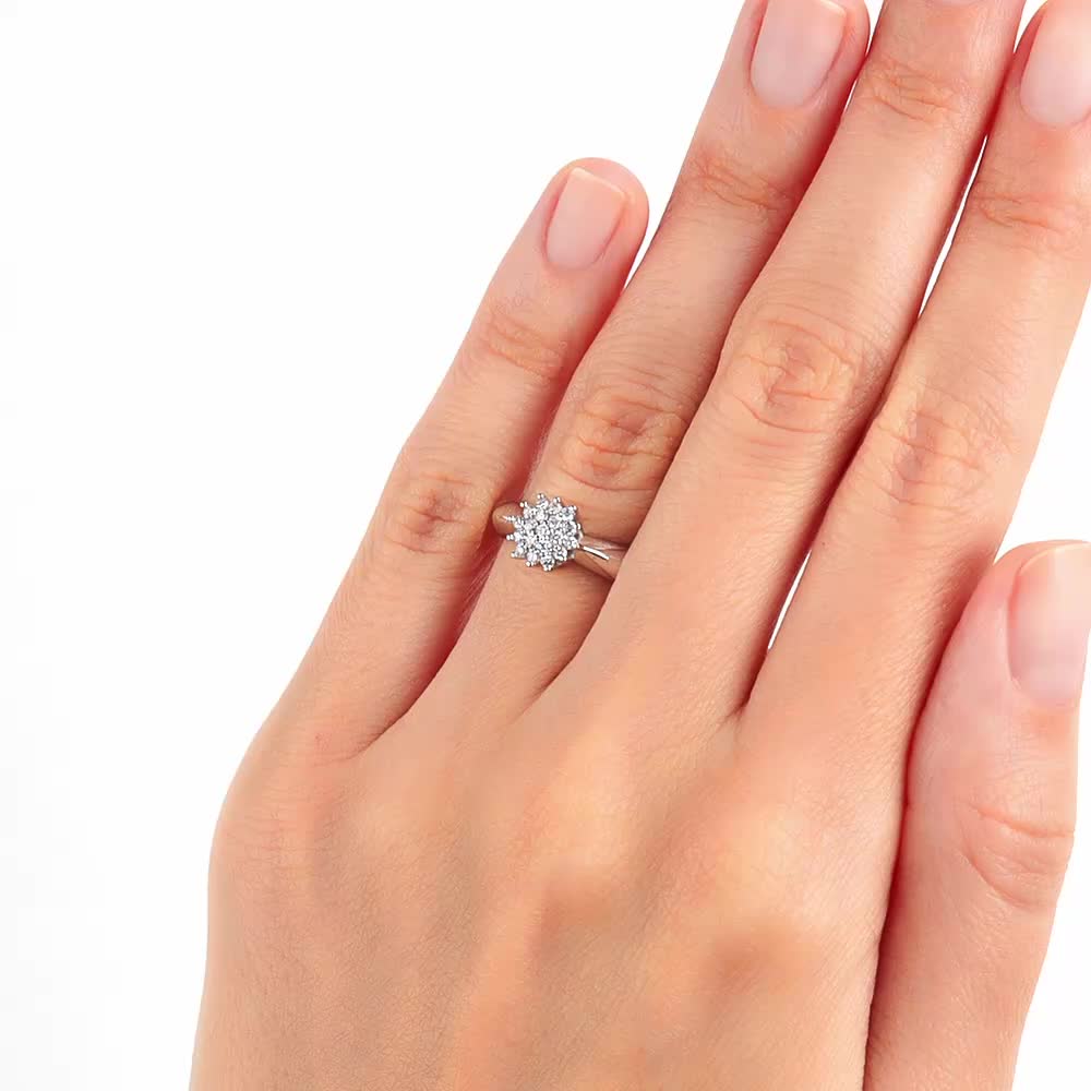 Кольцо с 19 бриллиантами, 0.215 карат, огранка круг 57 граней, цвет 4, чистота 6, тип огранки А;