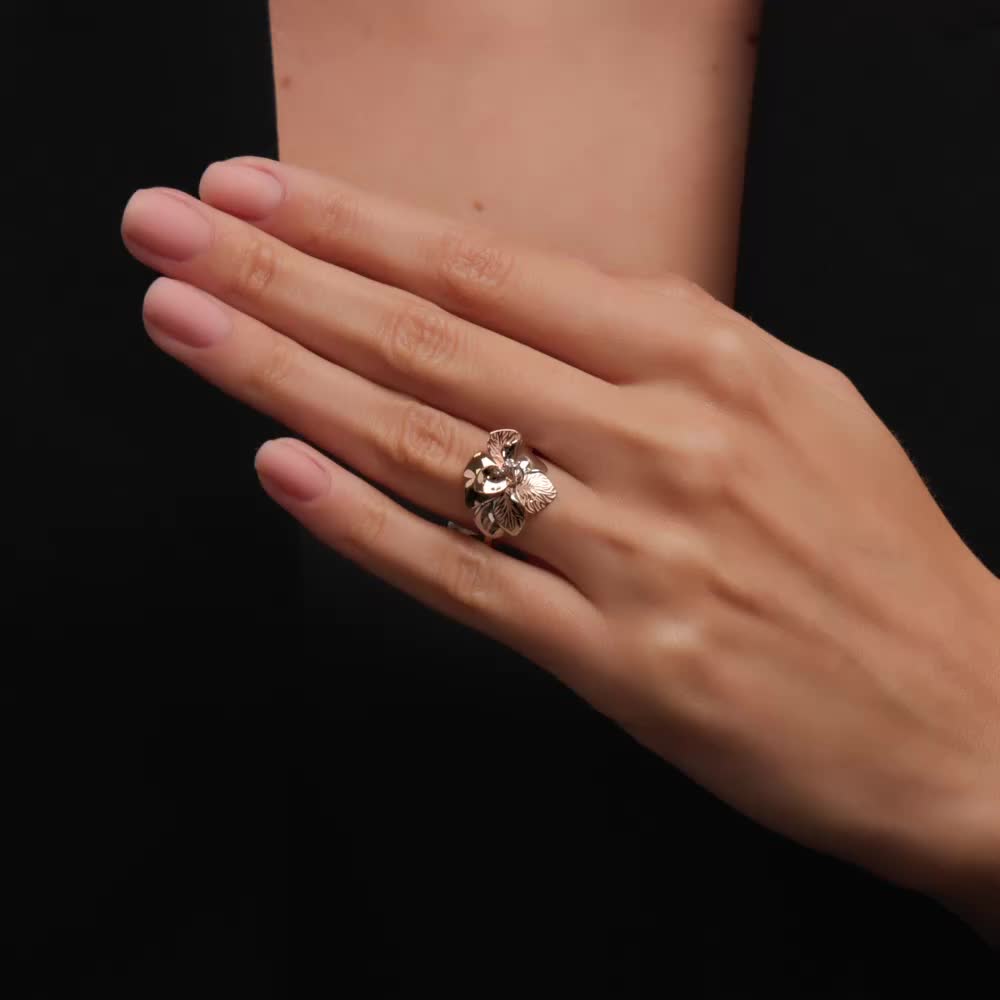 Великолепное золотое кольцо в виде цветка, смотрится по летнему и богато