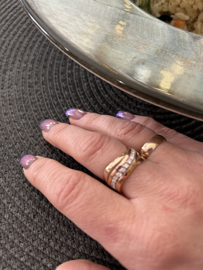 Кольцо очень понравилось,смотрится намного интереснее в жизни,много перемерила и решила что к обручалке оно подходит идеально