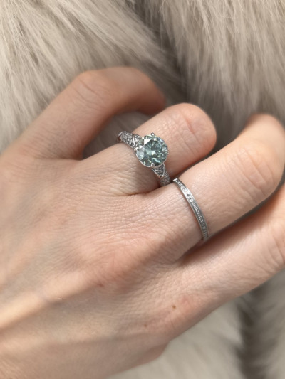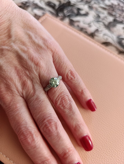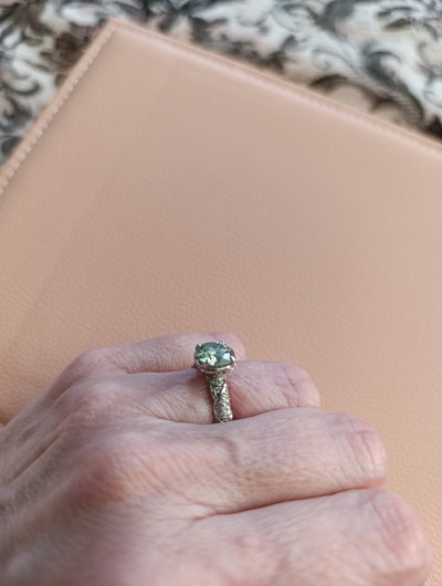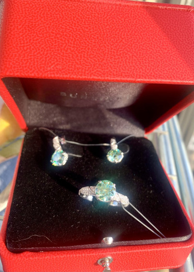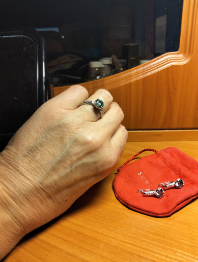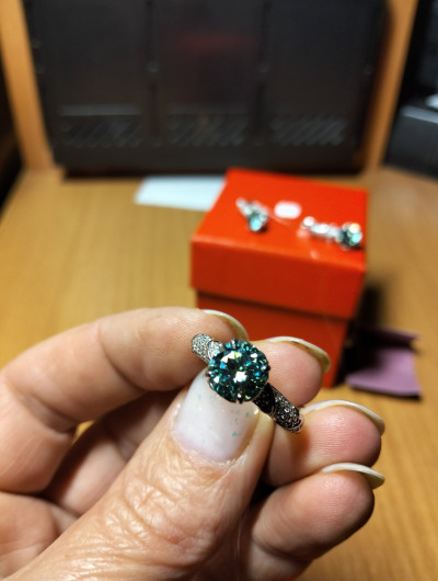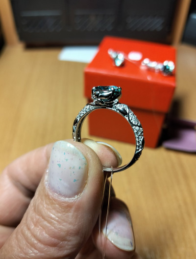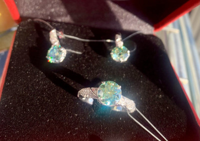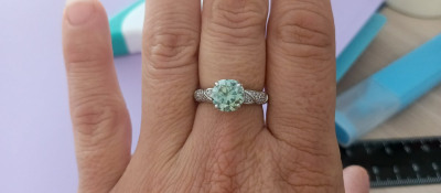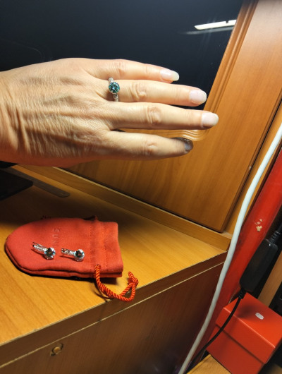 Вообще-то у меня не было ни одного украшения из серебра. И, вероятно, поэтому я была не знакома с муассанитом. Но мне нравится Параиба! Как я вышла на изделия из серебра- сама не понимаю! Это судьба! Когда я увидела это кольцо, то поняла сразу, что жить без него я дальше спокойно не смогу! Недели две моих страданий и сомнений - и вот у меня комплект! Сказать, что я счастлива - ничего не сказать! Я безумно счастлива! Спасибо дизайнеру, ювелирам и Санлайту! Я открыла для себя потрясающий по красоте камень! Пусть даже искусственный. Сертификаты, кстати, и на изделия, и на камень прислали. Кольцо довольно увесистое, благородного белого цвета, на пальце выглядит объемно. Ну, а муассанит Параиба, как всегда великолепен!