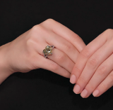 Очень понравилось кольцо. Крупный нежно-желтый фианит завораживает своими переливами. Это не самый яркий оттенок жёлтого( в моей коллекции имеется украшение и с более ярким жёлтым камнем), но это ни в коей мере не отражается на его красоте. На руке смотрится очень нежно, заметно и нарядно.