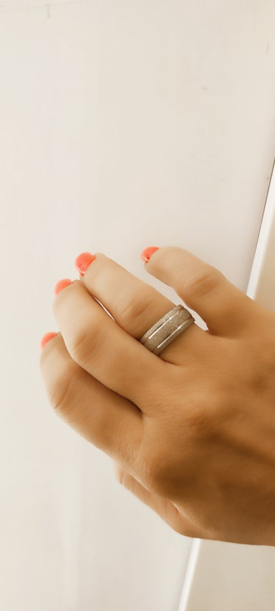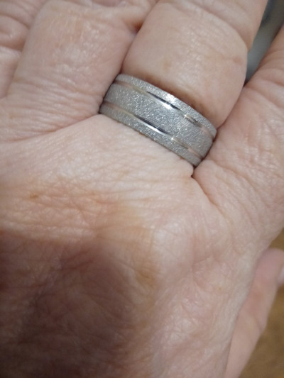 Муж выбрал себе это колечко, широкое и интересно выглядит, не теряется на мужской руке.