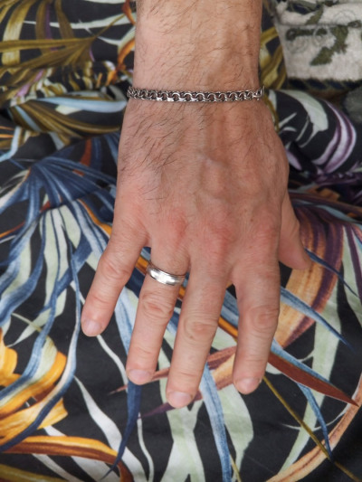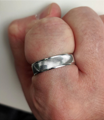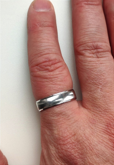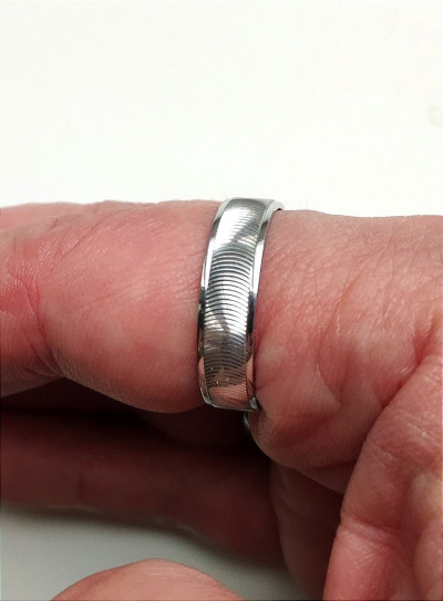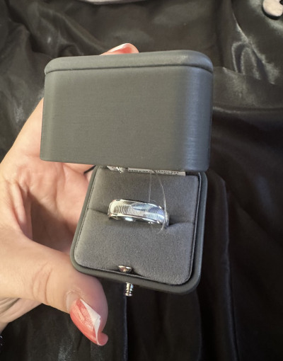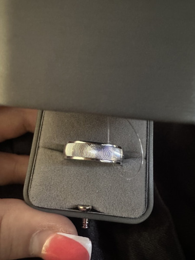 Кольцо покупали мужу в качестве обручального. Носит три месяца, никаких изменений. Выглядит, как белое золото, не потемнело. Алмазные грани переливаются. Не тонкое, заметное. Очень давольна покупкой. Рекомендую. С серебряным браслетом очень красиво смотрится.