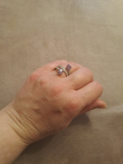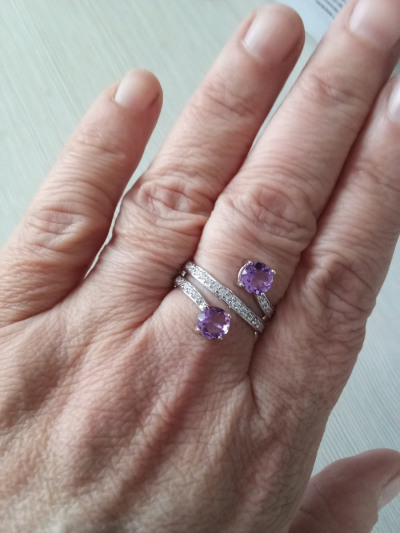 Кольцо с 2 аметистами природными, 1.5 карат;