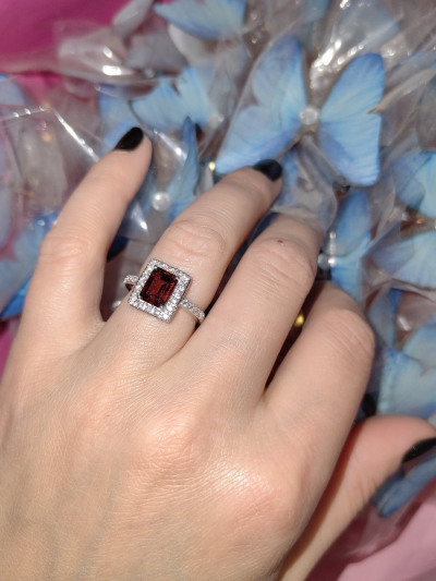 Очень красивое колечко, переливаются и блестят фианитики как брилианты, и гранат очень красивый!😍🥰❤