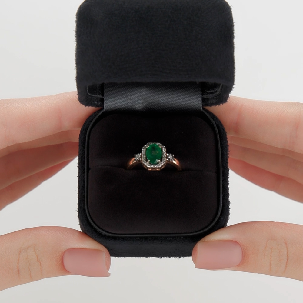 Муж подарил на др это прекрасное колечко, кольцо очень достойное, изумруд крупный в обрамлении бриллиантов смотрится дорого. Отдельное спасибо консультантом, т.к. моего размера не было, подобрали несколько вариантов и заказали доставку на следующий день, очень удобно!