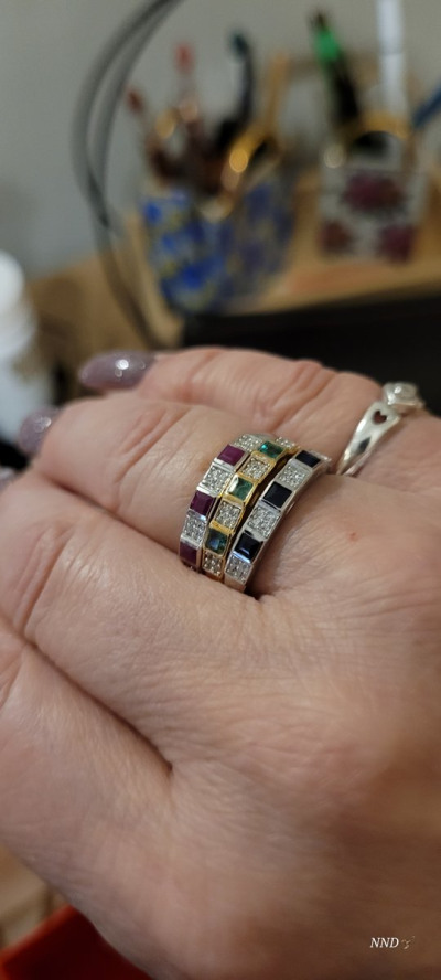 Давно искала эти дорожки. С сапфиром ,рубином и изумрудом! Теперь то, что я хотела у меня на пальце!! Спасибо ! Упаковано всё отлично, все сертификаты есть! Красота!