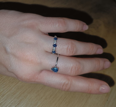 Прекрасно смотрится как самостоятельно так и в дополнении с другим кольцом. Рекомендую.Брала в комплекте с серьгами .