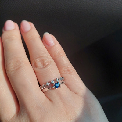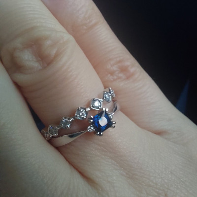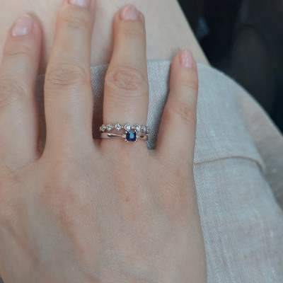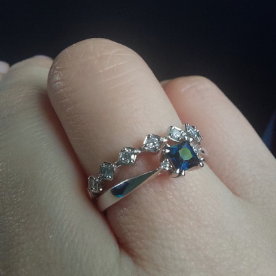 Миниатюрное симпатичное колечко. Сапфир меняет цвет в зависимости от освещения и угла зрения. Бриллианты едва заметны)