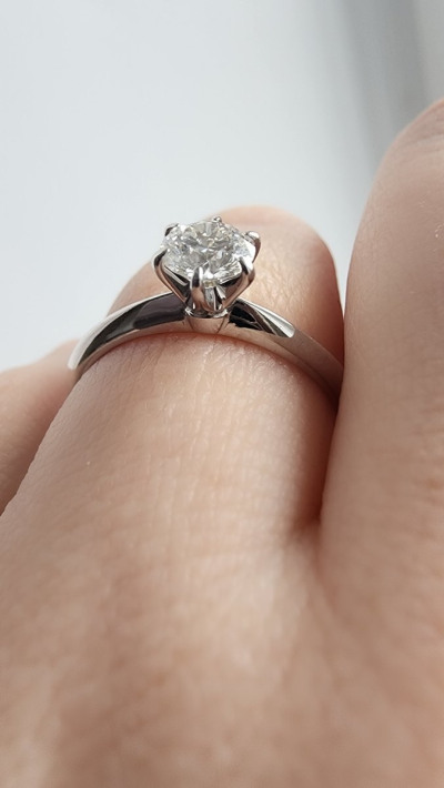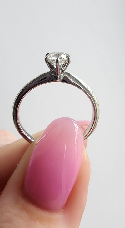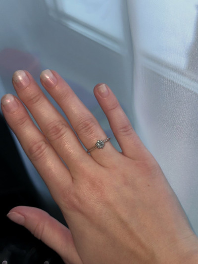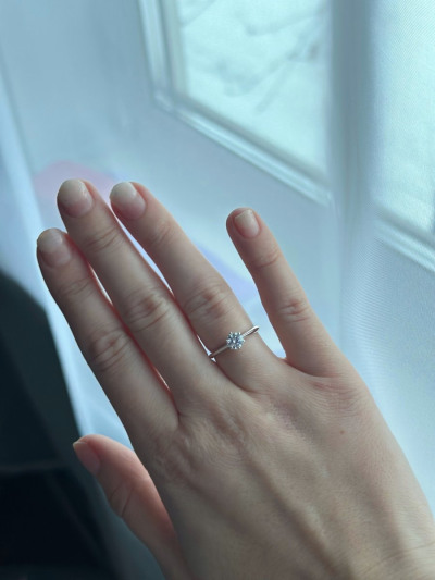 Очень красивое кольцо. Смотрится дорого и шикарно. Простой дизайн и невероятно красивый бриллиант, большой, чистый, сверкающий. Я в восторге!