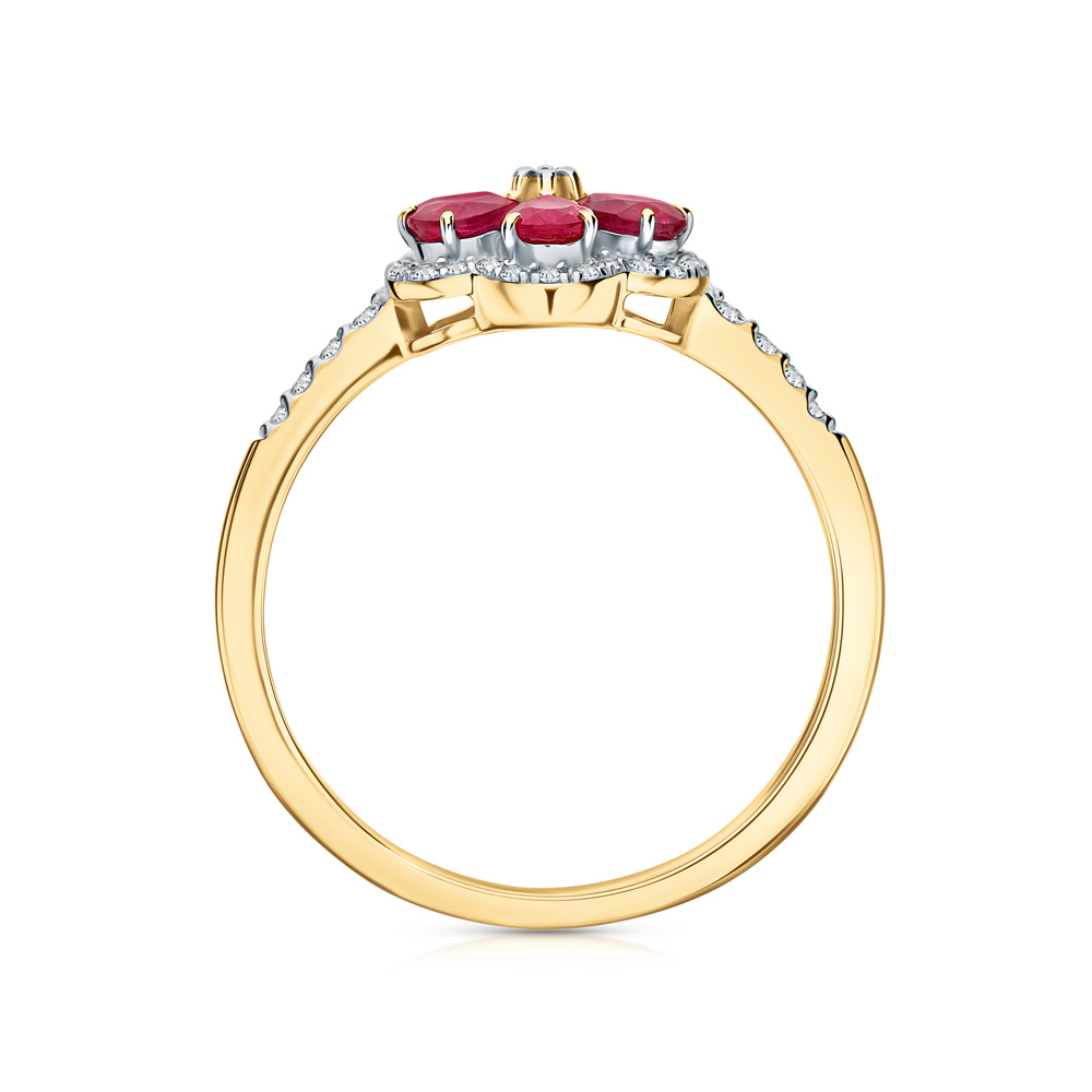 Золотое кольцо с бриллиантами природными и рубинами природными
