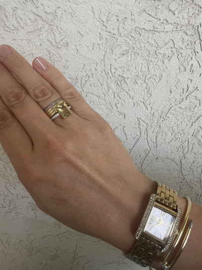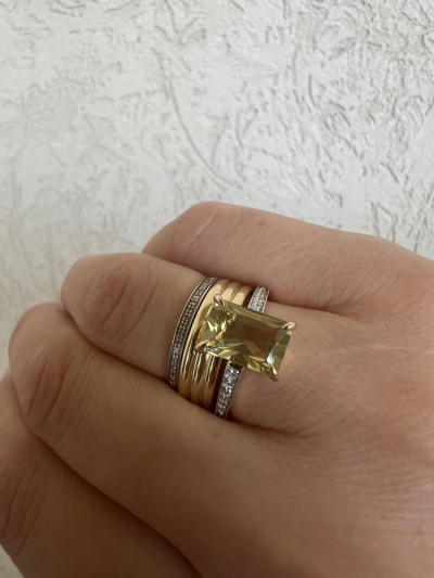 Золотое кольцо с бриллиантами природными и кварцами природными