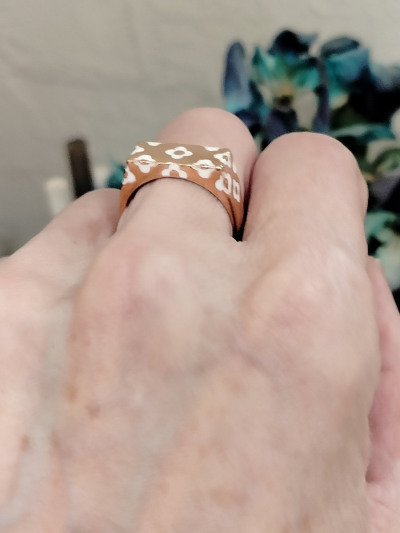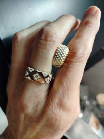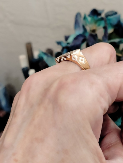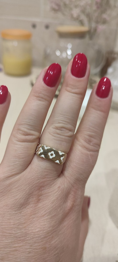 Эмаль всегда игнорировала, а тут вот зашло неожиданно.. Размер средний. То что надо. На пальце заметное. Выполненно качественно. Фото не передаёт всей прелести. Есть серьги с эмалью, тоже Санлайт, сочетается хорошо. На душе весна! Спасибо Санлайт! От души рекомендую!