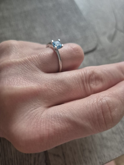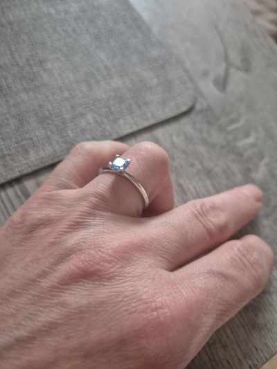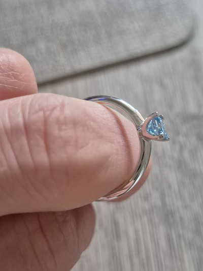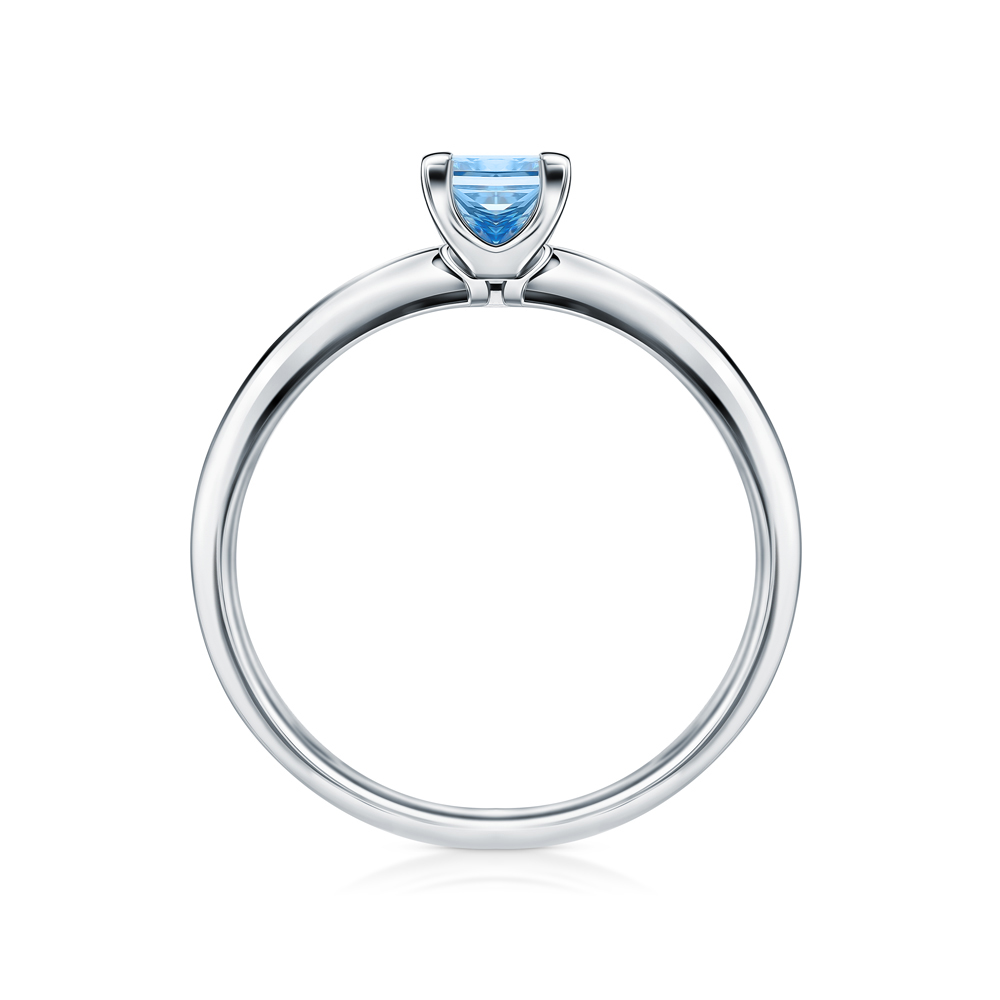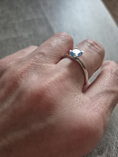 Кольцо с 1 бриллиантом выращенным, 0.57 карат, огранка принцесса 65 граней, цвет Голубой, чистота 5, тип огранки А;