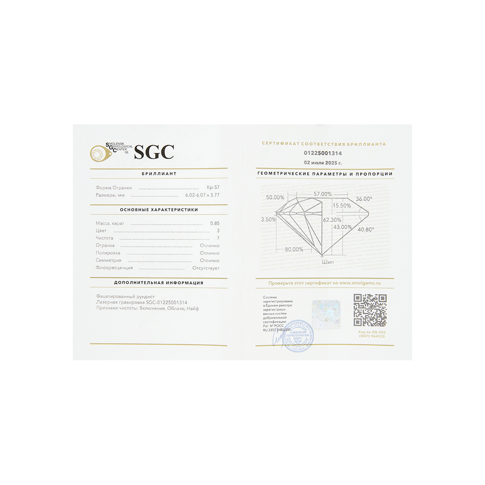 Сертификаты на камни