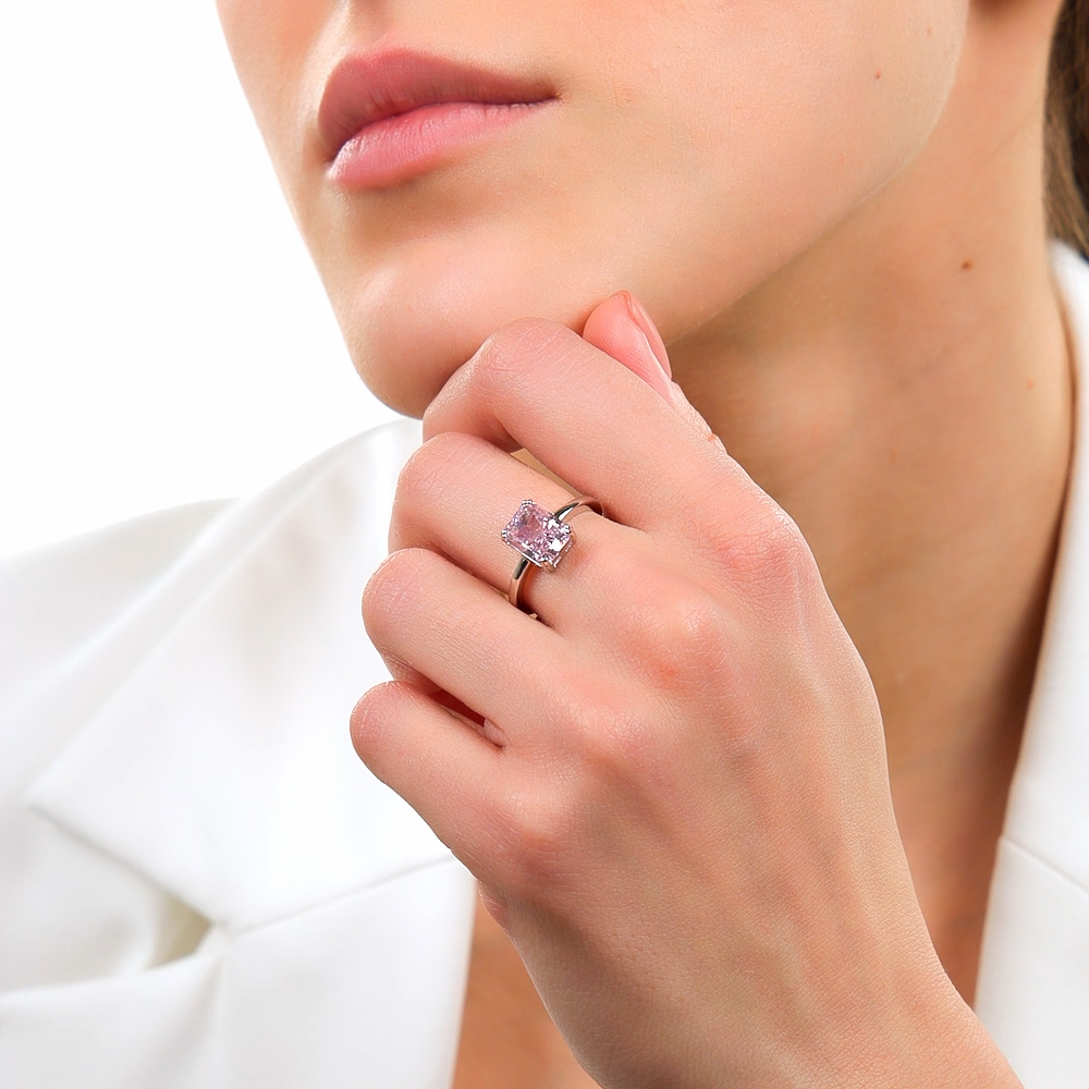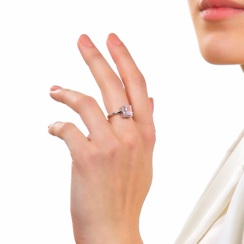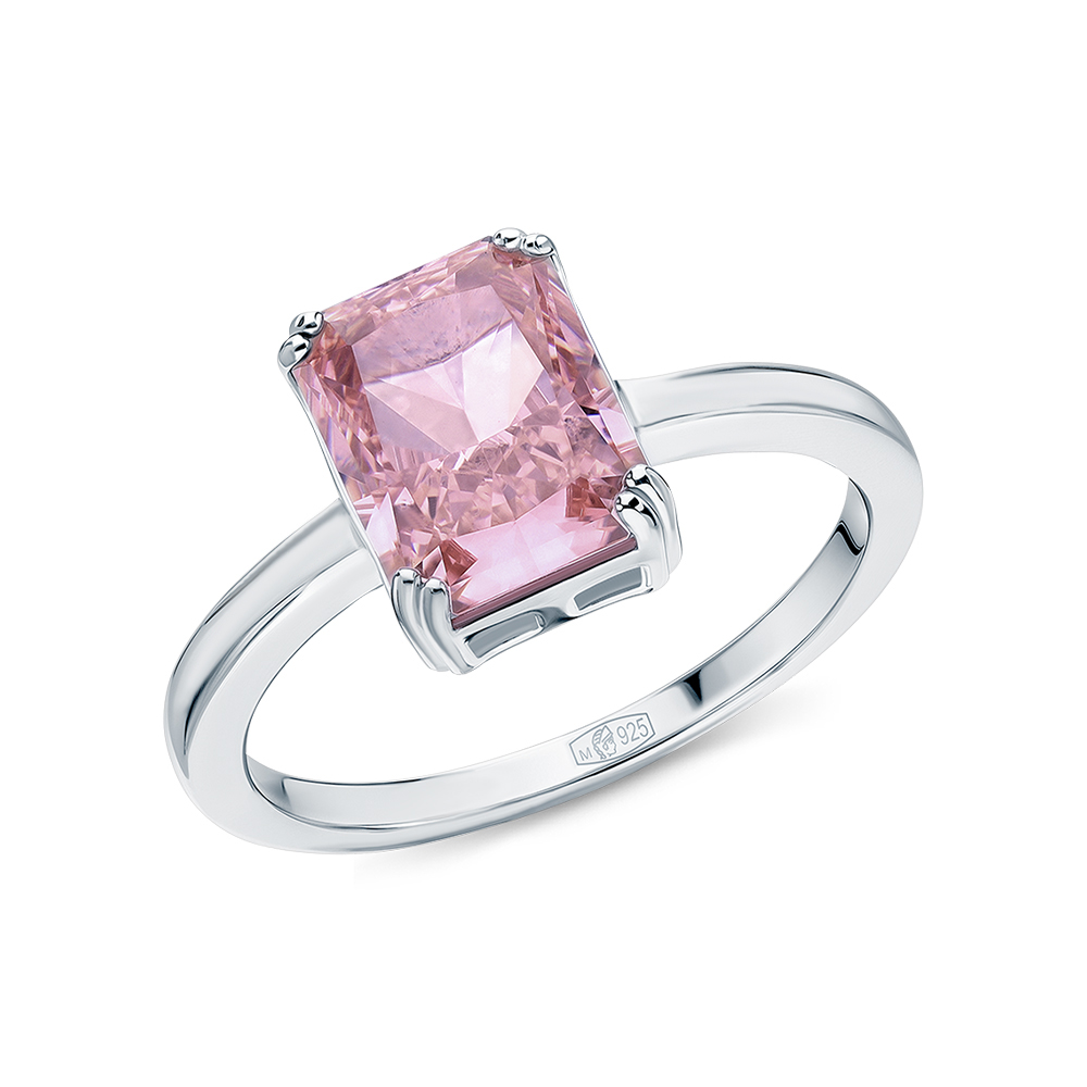 Кольцо, вставка: фианит розовый;