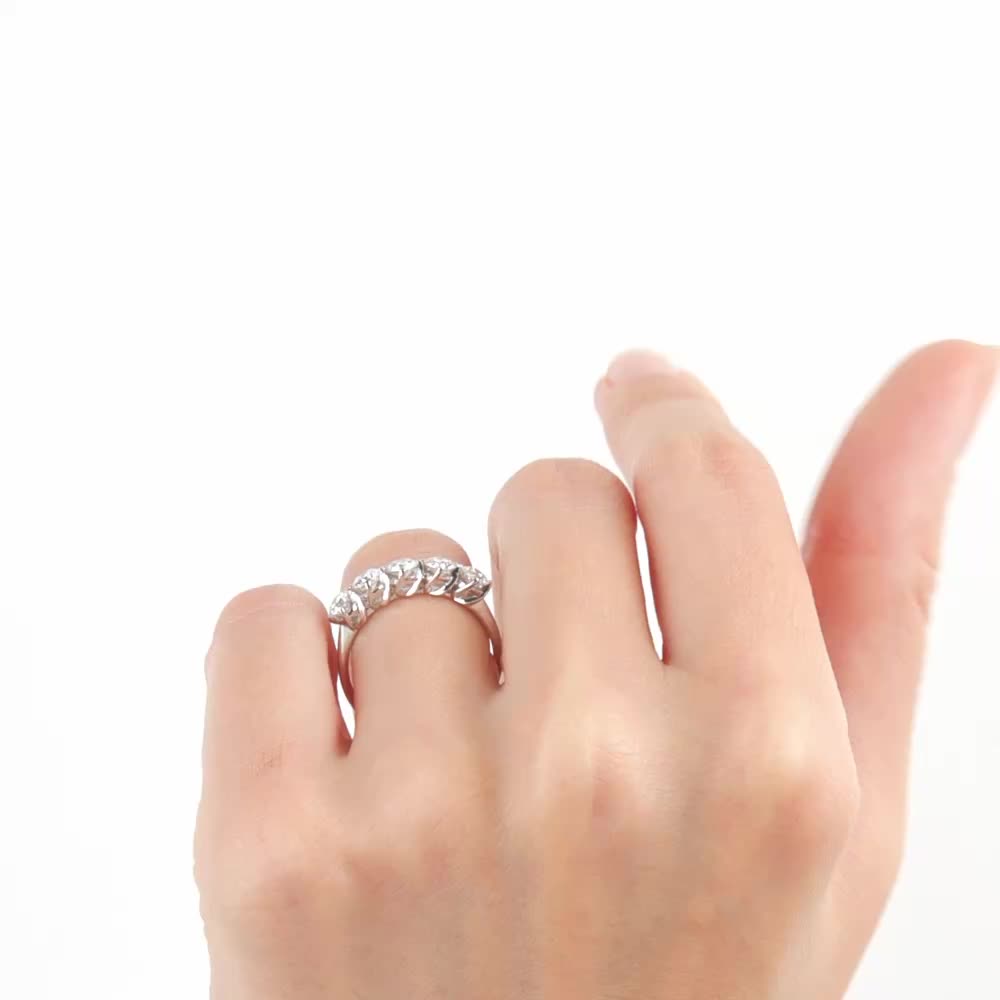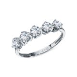 Кольцо с 5 бриллиантами выращенными, 0.88 карат, огранка круг 57 граней, цвет 3, чистота 5, тип огранки А;