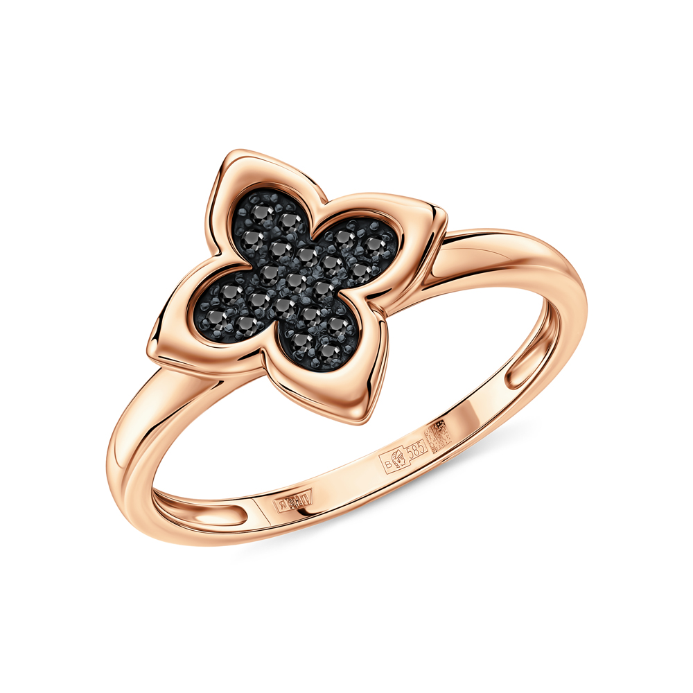 Золотое кольцо с бриллиантами чёрными природными