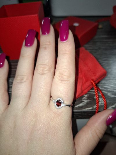 Серебряное кольцо с фианитами и гранатами природными