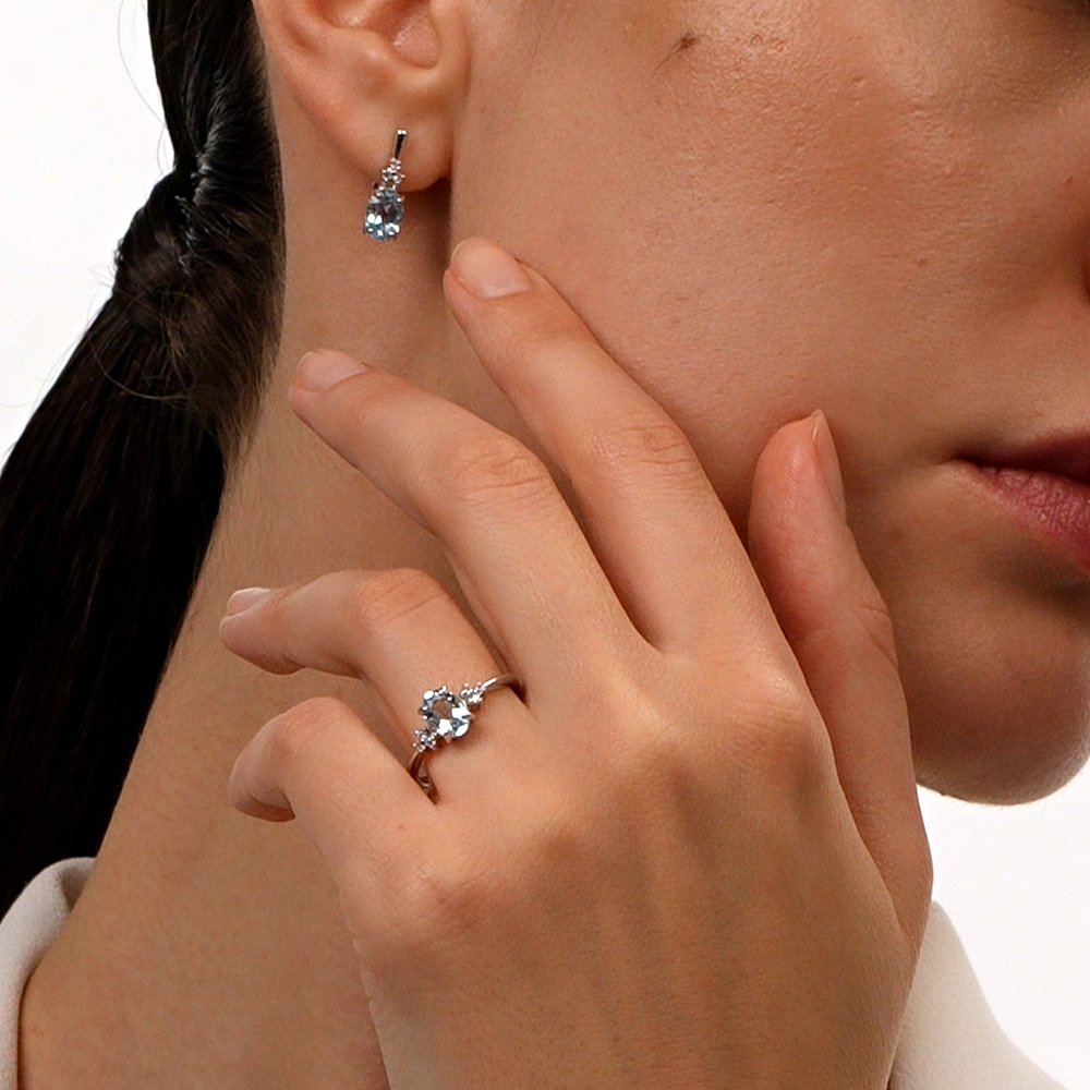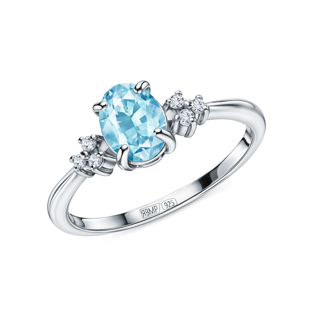 Серебряное кольцо с фианитами и топазами природными