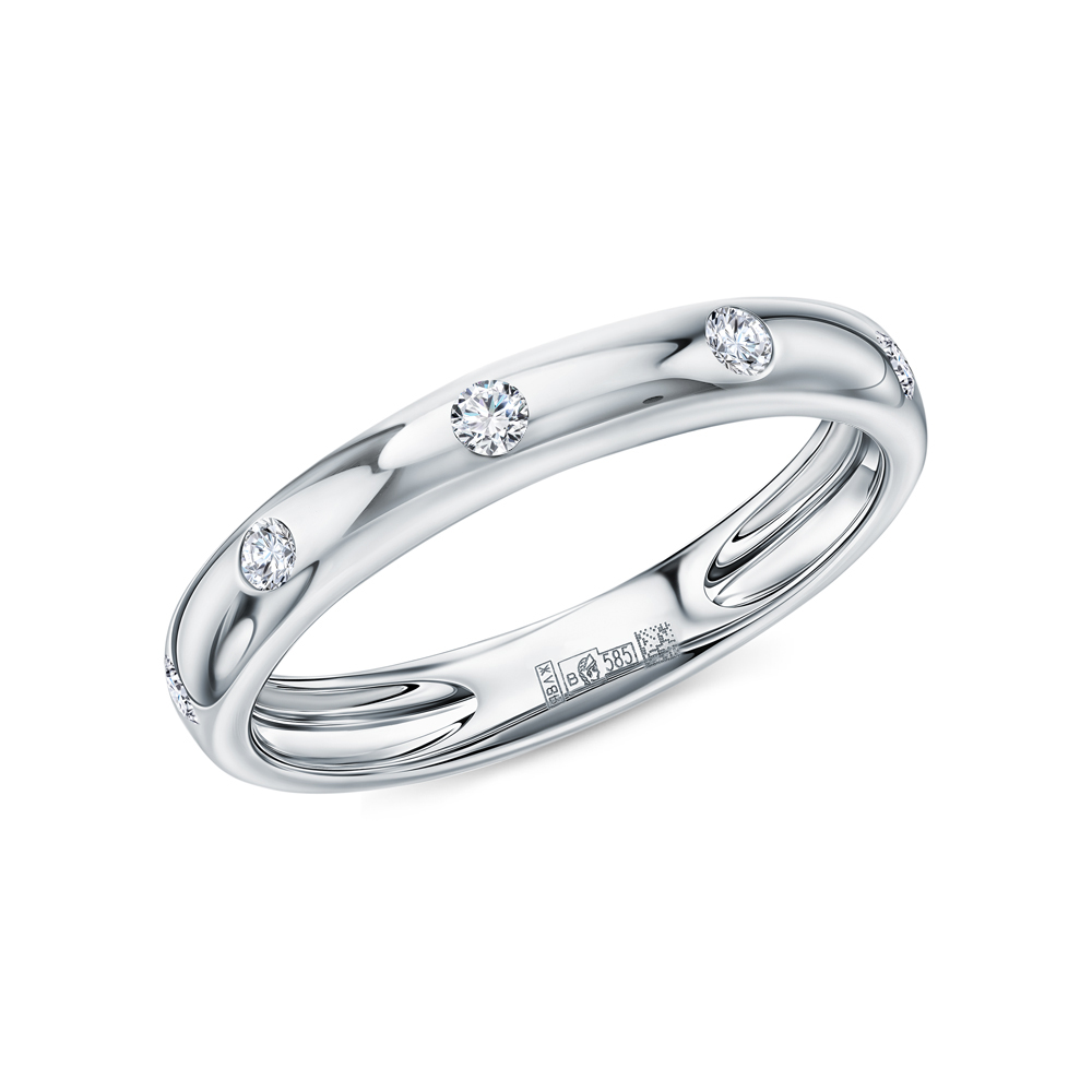 Кольцо с 5 бриллиантами выращенными, 0.15 карат, огранка круг 57 граней, цвет 3, чистота 5, тип огранки В;